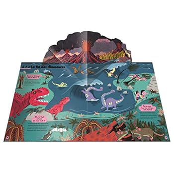 L'univers des dinosaures à explorer en 3D !Plus de 70 questions pour tout savoir sur les dinosaures grâce aux animations : - dans une enveloppe, des os à replacer sur un squelette de stégosaure pour jouer à faire comme un vrai paléontologue - des pop up : le stégosaure, le combat des tricératops, l'extinction des dinosaures - des flaps pour les rubriques petits mystères rigolos - une grande page déployée finale pour retrouver toutes les familles de dinosaures ... et une roue évolutive, des tirettes, des rabats et plein d'autres surprises pour explorer le monde des dinosaures avec Manon et Lucas.